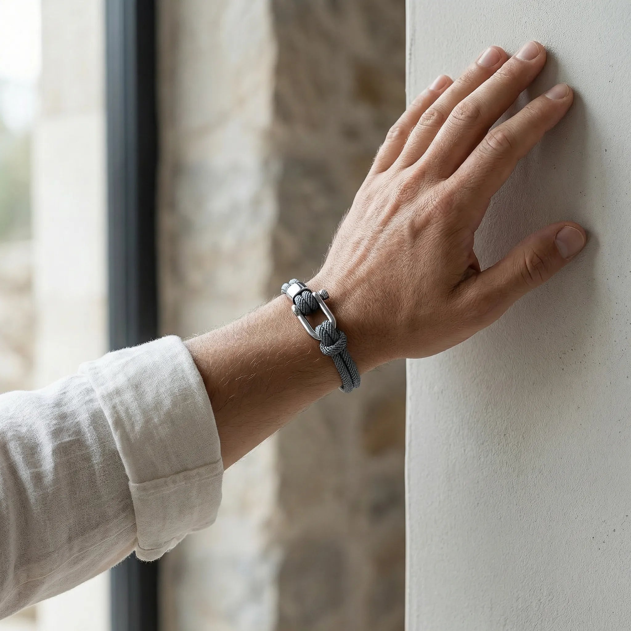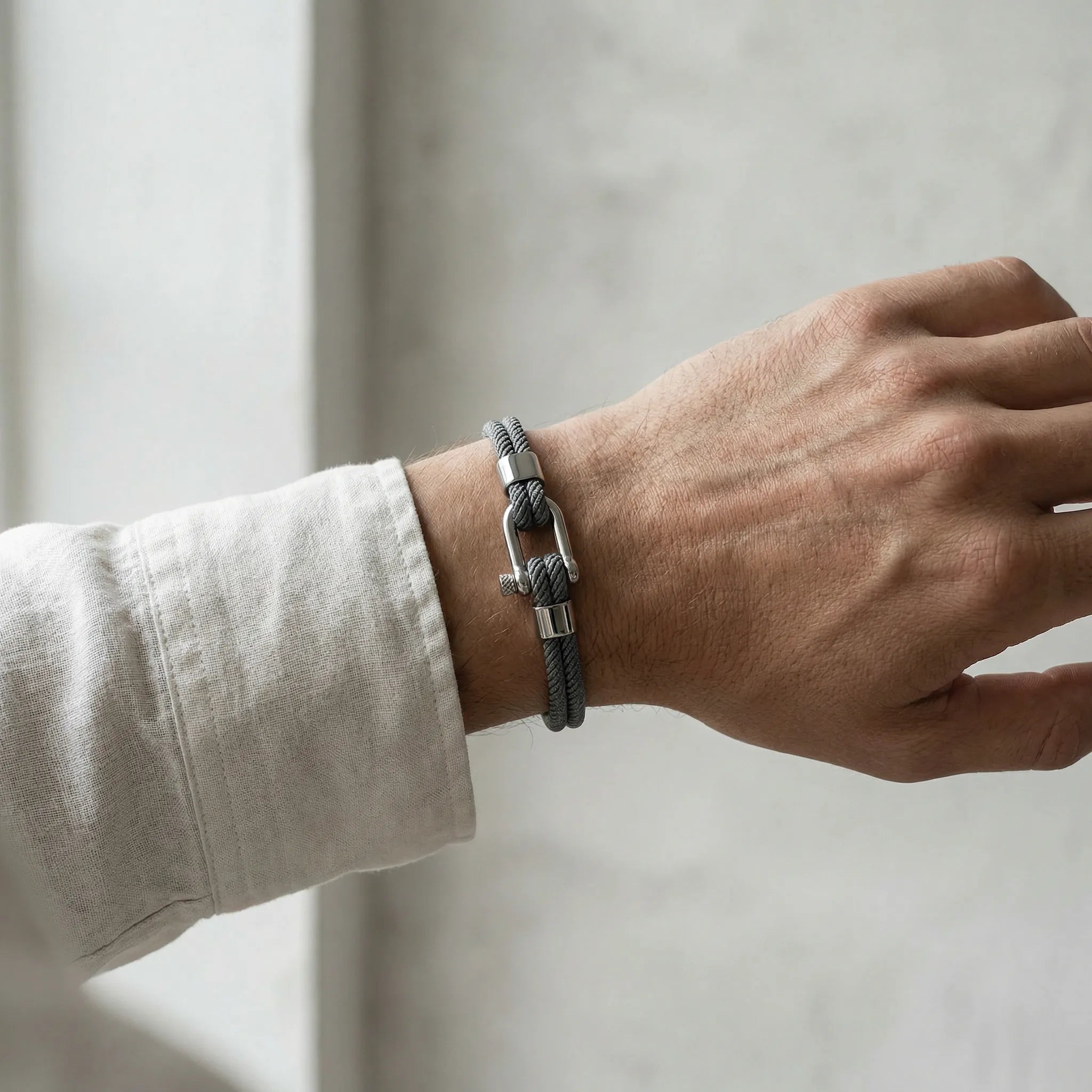 Inspired by engineering precision and mechanical symmetry, the Virel Bracelet explores structure and balance through clean geometry. Made with premium braided nautical nylon and finished in 316L stainless steel, it offers a technical touch softened by refined details.