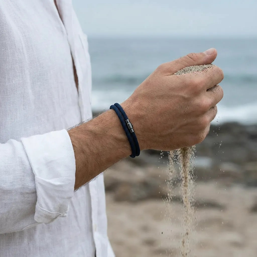 Inspired by the age of caravel navigation, Selwyn Bracelet is where tradition meets precision: premium nautical nylon, a clean finish, and 316L stainless steel — an everyday essential designed to follow your routine without calling attention.