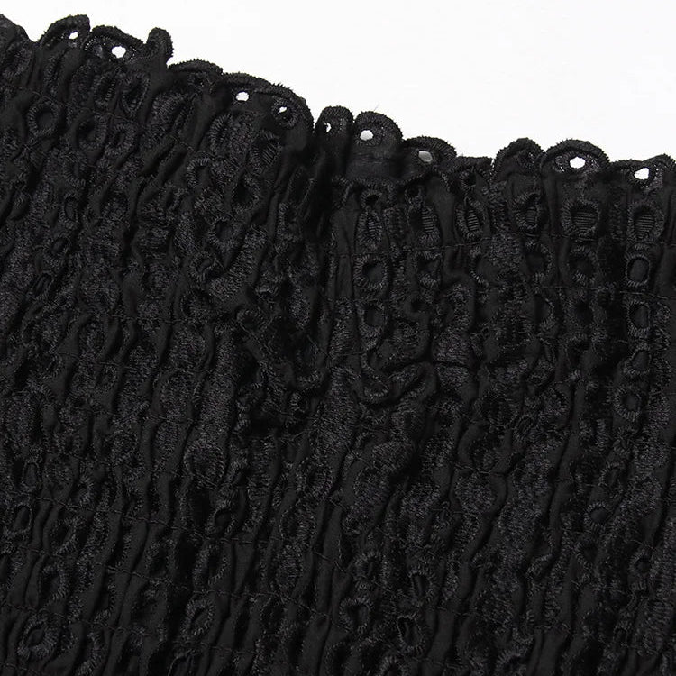 Turn heads with the stunning Liora Dress, a strapless design featuring a smocked bodice that hugs your figure perfectly. The flirty, ruffled tiered skirt adds playful volume and movement, making this dress a must-have for any summer occasion or night out. The intricate eyelet detailing on the skirt adds a delicate touch to this chic style.