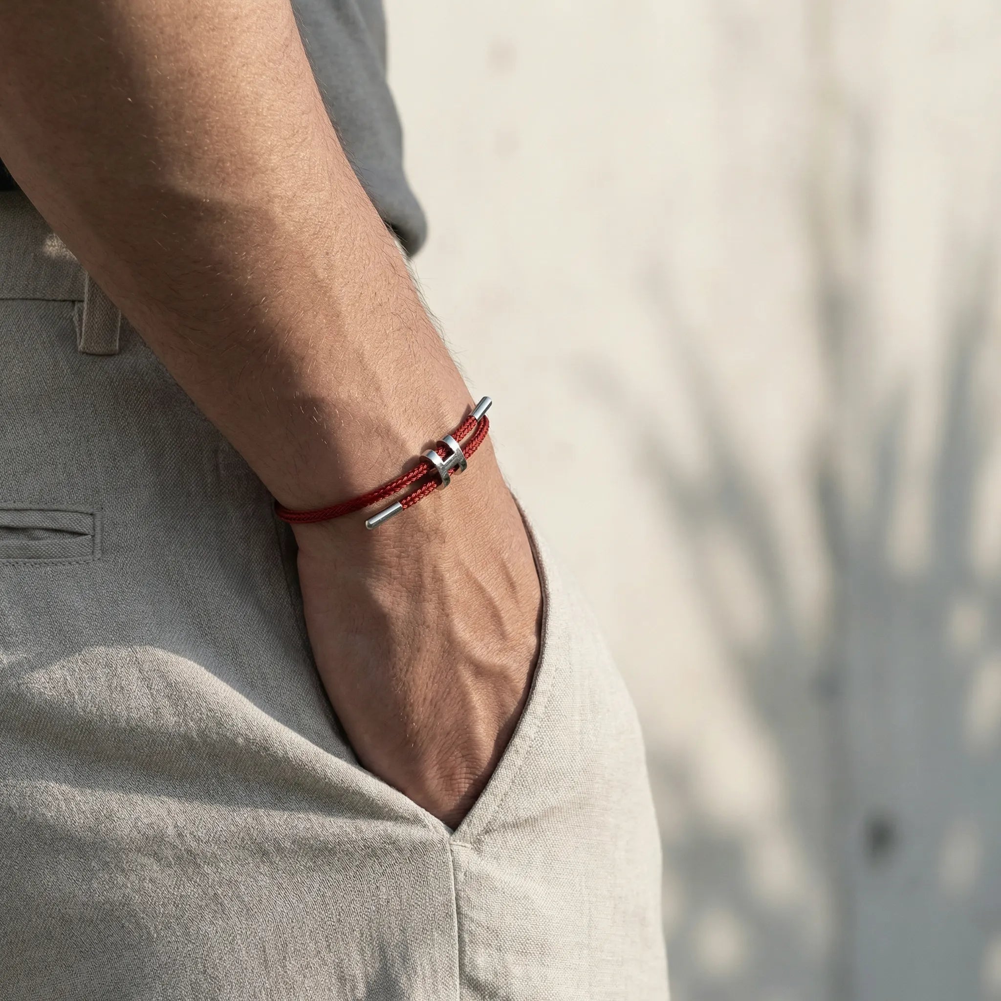 Inspired by understated contrast and modern minimalism, Ravenn Bracelet pairs premium braided nylon with polished stainless steel — a clean, confident piece made to follow your routine without demanding attention.